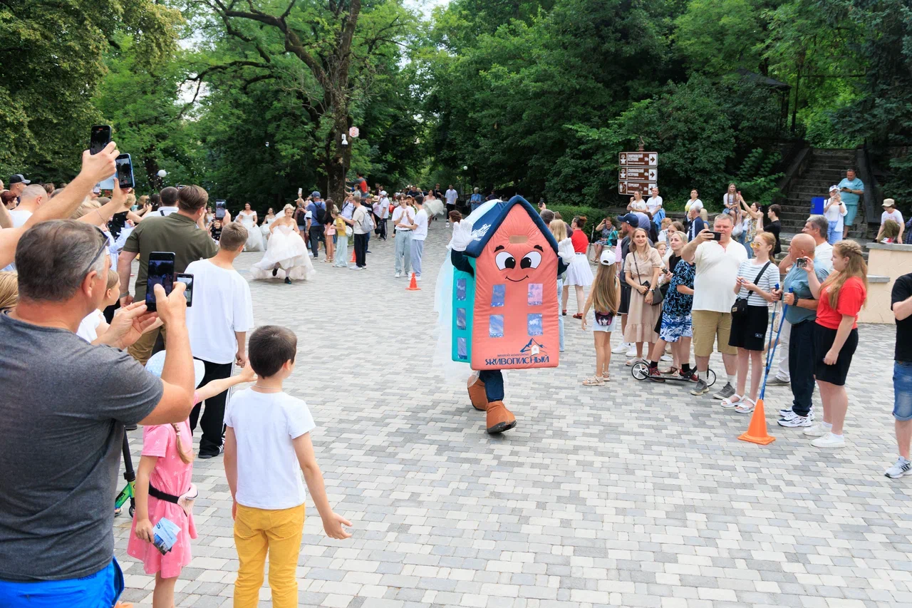 Особый шарм мероприятию придали забавные маскоты-домики — жених и невеста, которые стали символами любви и уюта. А домик-невеста даже присоединился к забегу, добавив веселья и оригинальности событию!